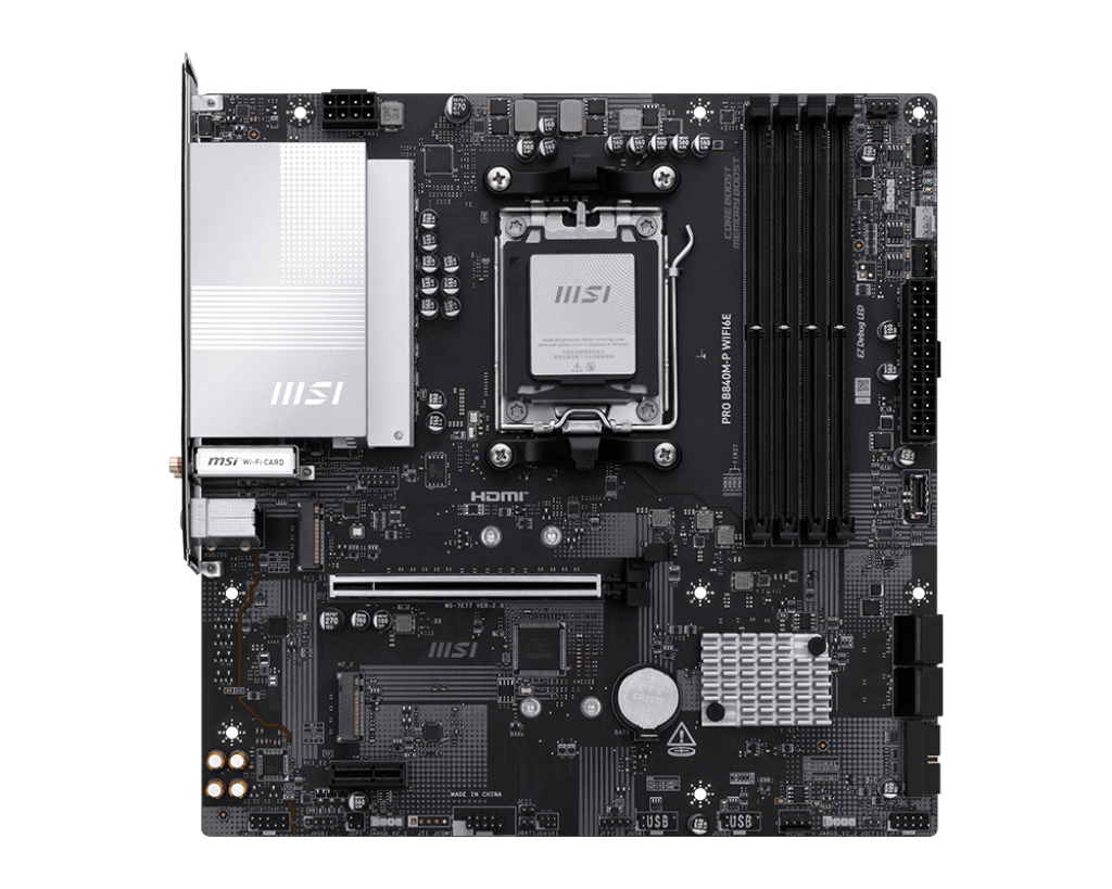 Piegāde visā Latvijā un iespēja saņemt pasūtījumu izsniegšanas punktā. Ērti norēķinu veidi. Iespēja apmaksat tieši interneta veikalā, ar karti vai skaidrā naudā preces saņemšanas punkta. Detalizēts preču apraksts un salīdzināšanas iespēja. Populārākie zīmoli no pasaules ražotājiem. 141,80 € Preces ID: 34245 Pamatplate MSI PRO B840M-P WIFI6E (7E77-001R) PamataRažotājs ........................................................................................................................................................................................................ Ražotāja kods ........................................................................................................................................................................................................ 7E77-001R Socket ........................................................................................................................................................................................................ AM5 Mikroshēmu kopa (Chipset) ........................................................................................................................................................................................................ AMD B840 AtmiņaAtmiņas veids ........................................................................................................................................................................................................ DDR5 Atmiņas slotu skaits ........................................................................................................................................................................................................ 4 Diska kontrolieriSATA kontrolieris ........................................................................................................................................................................................................ SATA-III (6 Gb/s) Paplašināšanas slotiPaplašināšanas sloti ........................................................................................................................................................................................................ PCI-E x16, PCI-E x1 Audio/VideoSkaņa ........................................................................................................................................................................................................ 8 kanāli (7.1) Audio kontrolieris ........................................................................................................................................................................................................ Realtek ALC897 TīklsTīkla saskarne ........................................................................................................................................................................................................ 2.5 Gigabit Ethernet (100/1000/2500 Mb/c), Wi-Fi, Bluetooth SaskarnesLigzdas aizmugurējā panelī ........................................................................................................................................................................................................ 4 x USB 2.0, 3 x audio jacks, HDMI PapilduLigzdas korpusa ventilatoru pieslēgšanai ........................................................................................................................................................................................................ 4-pin ATX 12 V barošanas ligzda ........................................................................................................................................................................................................ 8-pin Iekšējās USB pieslēgvietas platē ........................................................................................................................................................................................................ 4 x USB 2.0 ARGB 5V savienotāji uz plates ........................................................................................................................................................................................................ 3-pin RGB 12V savienotāji uz plates ........................................................................................................................................................................................................ 4-pin Formfaktors ........................................................................................................................................................................................................ mATX Noformējumā izmantotās krāsas ........................................................................................................................................................................................................ melns PapildusGarantija ........................................................................................................................................................................................................ 12/24 men. Ražotāja mājās lapa ........................................................................................................................................................................................................ |