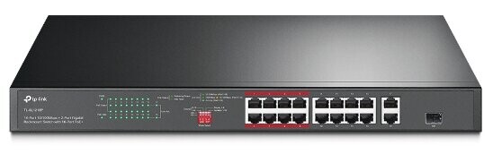 2 RJ45 ports 10/100/1000 Mbps; 16 PoE+ ports 10/100 Mbps, Plug and Play, PoE range for video surveillance - up to 250 m; the ability to assign high priority to ports 1-8; isolation mode to separate the traffic of ports 1-16; 2 fans