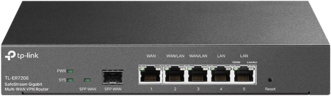 Piegāde visā Latvijā un iespēja saņemt pasūtījumu izsniegšanas punktā. Ērti norēķinu veidi. Iespēja apmaksat tieši interneta veikalā, ar karti vai skaidrā naudā preces saņemšanas punkta. Detalizēts preču apraksts un salīdzināšanas iespēja. Populārākie zīmoli no pasaules ražotājiem. 18.699,00 € Preces ID: 382644 Rūteris (maršrutētājs) TP Link TL-ER7206 PamataRažotājs ........................................................................................................................................................................................................ Ražotāja kods ........................................................................................................................................................................................................ ER7206 Ierīces veids ........................................................................................................................................................................................................ maršrutētājs Uzstādīšanas statīvā iespēja ........................................................................................................................................................................................................ jā Komutators/koncentratorsUplink/stack/SFP pieslēgvietu un moduļu skaits ........................................................................................................................................................................................................ 1 MaršrutētājsDHCP serveris ........................................................................................................................................................................................................ jā Starptīklu ekrāns (FireWall) ........................................................................................................................................................................................................ jā WAN-pieslēgvieta ........................................................................................................................................................................................................ Ethernet 1 Gbit/s WAN-pieslēgvietu skaits ........................................................................................................................................................................................................ 4 VPNVPN (VPN pass through) atbalsts ........................................................................................................................................................................................................ jā VPN tuneļu (VPN Endpoint) atbalsts ........................................................................................................................................................................................................ jā Atbalstāmo VPN tuneļu skaits ........................................................................................................................................................................................................ 100 PPTP atbalsts ........................................................................................................................................................................................................ jā L2TP atbalsts ........................................................................................................................................................................................................ jā IPSec atbalsts ........................................................................................................................................................................................................ jā AtmiņaOperatīvās atmiņas apjoms ........................................................................................................................................................................................................ 512 Mb Zibatmiņas apjoms ........................................................................................................................................................................................................ 128 Mb Monitorings un konfigurēšanaKonsoles pieslēgvieta ........................................................................................................................................................................................................ jā Tīmekļa saskarne ........................................................................................................................................................................................................ jā Maršrutēšanas protokoliStatiskā maršrutēšana ........................................................................................................................................................................................................ jā PapilduPapildu informācija ........................................................................................................................................................................................................ 1 Gigabit SFP WAN port, 1 Gigabit RJ45 WAN port, 2 Gigabit WAN/LAN ports PapildusIzmēri (PxAxD) ........................................................................................................................................................................................................ 226 x 35 x 131 mm Garantija ........................................................................................................................................................................................................ 12/24 men. Ražotāja mājās lapa .............................................................................................................