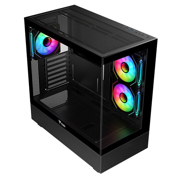 Piegāde visā Latvijā un iespēja saņemt pasūtījumu izsniegšanas punktā. Ērti norēķinu veidi. Iespēja apmaksat tieši interneta veikalā, ar karti vai skaidrā naudā preces saņemšanas punkta. Detalizēts preču apraksts un salīdzināšanas iespēja. Populārākie zīmoli no pasaules ražotājiem. Preces ID: 39909 Datoru korpuss iTek Showbui 42 RGB Black (ITGCASB42B) PamataRažotājs ........................................................................................................................................................................................................ Ražotāja kods ........................................................................................................................................................................................................ ITGCASB42B Tipizmērs ........................................................................................................................................................................................................ Midi-Tower Formfaktors ........................................................................................................................................................................................................ ATX, mATX, Mini-ITX Barošanas bloka izvietojums ........................................................................................................................................................................................................ apakšējais KonstrukcijaKorpusa materiāls ........................................................................................................................................................................................................ metālisks Loga esamība sānu sienā ........................................................................................................................................................................................................ jā Loga materiāls ........................................................................................................................................................................................................ rūdīts stikls Iekšējie 2.5" nodalījumi ........................................................................................................................................................................................................ 1 Iekšējie 3.5" nodalījumi ........................................................................................................................................................................................................ 1 Paplašināšanas slotu skaits ........................................................................................................................................................................................................ 7 Video kartes maksimālais garums ........................................................................................................................................................................................................ 410 mm Dzesētāja maksimālais augstums ........................................................................................................................................................................................................ 181 mm Barošanas bloka maksimālais garums ........................................................................................................................................................................................................ 186 mm Saskarnes uz priekšējā paneļa ........................................................................................................................................................................................................ Combo headphone/mic port, 2 x USB 3.0, USB Type-C, audio Komplektā iekļautie ventilatoriUzstādītie ventilatori ........................................................................................................................................................................................................ 2 x 120 mm sānū panelī, 120 mm aizmugurējā panelī Papildu ventilatoru stiprinājumiSānu panelis ........................................................................................................................................................................................................ 2 x 120 mm Augšējais panelis ........................................................................................................................................................................................................ 2 x 120 mm vai 2 x 140 mm Aizmugures panelis ........................................................................................................................................................................................................ 120 mm Vieta papildu ventilatoriem ........................................................................................................................................................................................................ 2 x 120 mm augšējā panelī, 2 x 140 mm augšējā panelī, 2 x 120 mm sānū panelī, 120 mm aizmugurējā panelī ĪpašībasApgaismojuma veids ........................................................................................................................................................................................................ ARGB (Addressable RGB) Possibility to install SVO ........................................................................................................................................................................................................ jā Placement of the CBO radiator .....................................................................................................................................