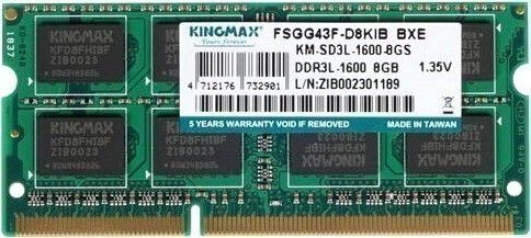 Piegāde visā Latvijā un iespēja saņemt pasūtījumu izsniegšanas punktā. Ērti norēķinu veidi. Iespēja apmaksat tieši interneta veikalā, ar karti vai skaidrā naudā preces saņemšanas punkta. Detalizēts preču apraksts un salīdzināšanas iespēja. Populārākie zīmoli no pasaules ražotājiem. Preces ID: 401461 Operatīvā atmiņa 8Gb DDR-III 1600MHz Kingmax SO-DIMM (KM-SD3L-1600-8GS) PamataRažotājs ........................................................................................................................................................................................................ Ražotāja kods ........................................................................................................................................................................................................ KM-SD3L-1600-8GS Formfaktors ........................................................................................................................................................................................................ SO-DIMM Atmiņas veids ........................................................................................................................................................................................................ DDR3 Atmiņas apjoms ........................................................................................................................................................................................................ 8 Gb Viena moduļa apjoms ........................................................................................................................................................................................................ 8 Gb Moduļu skaits komplektā ........................................................................................................................................................................................................ 1 Taktātrums ........................................................................................................................................................................................................ 1600 MHz Caurlaides spēja ........................................................................................................................................................................................................ 12800 Mb/s TaimingiCAS Latency (CL) ........................................................................................................................................................................................................ 11 RAS to CAS Delay (tRCD) ........................................................................................................................................................................................................ 11 Row Precharge Delay (tRP) ........................................................................................................................................................................................................ 11 Activate to Precharge Delay (tRAS) ........................................................................................................................................................................................................ 28 PapilduBarošanas spriegums ........................................................................................................................................................................................................ 1.35 V Dzesēšanas sistēma ........................................................................................................................................................................................................ nav PapildusGarantija ........................................................................................................................................................................................................ 12/24 men. |