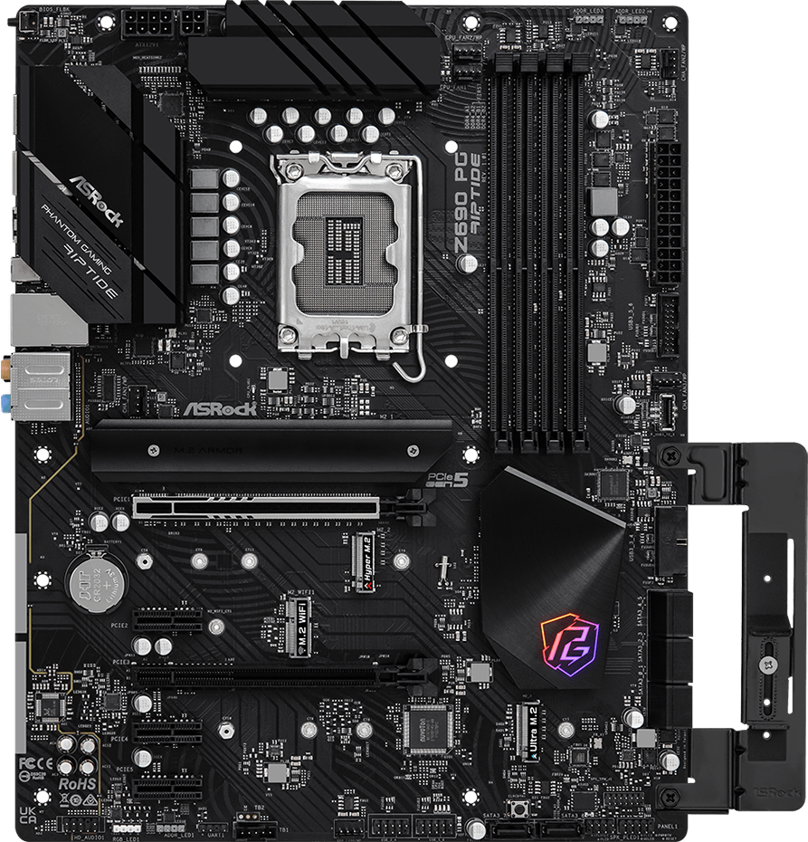 Piegāde visā Latvijā un iespēja saņemt pasūtījumu izsniegšanas punktā. Ērti norēķinu veidi. Iespēja apmaksat tieši interneta veikalā, ar karti vai skaidrā naudā preces saņemšanas punkta. Detalizēts preču apraksts un salīdzināšanas iespēja. Populārākie zīmoli no pasaules ražotājiem. 14.670,00 € Preces ID: 416196 Pamatplate ASRock Z690 PG Riptide PamataRažotājs ........................................................................................................................................................................................................ Ražotāja kods ........................................................................................................................................................................................................ Z690 PG Riptide Ligzda ........................................................................................................................................................................................................ LGA 1700 Mikroshēmu kopa (Chipset) ........................................................................................................................................................................................................ Intel Z690 AtmiņaAtmiņas veids ........................................................................................................................................................................................................ DDR4 Atmiņas slotu skaits ........................................................................................................................................................................................................ 4 Diska kontrolieriSATA kontrolieris ........................................................................................................................................................................................................ 8 x SATA-III (6 Gb/s) RAID atbalsts ........................................................................................................................................................................................................ 0, 1, 5, 10 Paplašināšanas slotiPaplašināšanas sloti ........................................................................................................................................................................................................ PCI-E 5.0 x16, PCI-E 4.0 x16, 3 x PCI-E x1, 4 x PCI-E M.2 M.2. slotu veids ........................................................................................................................................................................................................ - Key M, 2260/2280 (PCIe Gen4x4); - Key M, 2242/2260/2280 (PCIe Gen4x4); - Key M, 2260/2280/22110 (SATA3 6.0 & PCIe Gen3x4); - Key E, 2230, WiFi/BT PCIe WiFi module and Intel CNVi. Atbalstītie PCI-Express režīmi ........................................................................................................................................................................................................ x16, x16/x4 Audio/VideoIntegrētais video ........................................................................................................................................................................................................ jā (ja tiek izmantots procesors ar video kodolu) Skaņa ........................................................................................................................................................................................................ 8 kanāli (7.1) Audio kontrolieris ........................................................................................................................................................................................................ Realtek ALC897 TīklsTīkla saskarne ........................................................................................................................................................................................................ 2.5 Gigabit Ethernet (100/1000/2500 Mbps) Tīkla kontrolieris ........................................................................................................................................................................................................ Killer E3100G SaskarnesLigzdas aizmugurējā panelī ........................................................................................................................................................................................................ PS/2, 2 x USB 2.0, 2 x USB 3.2 Gen1, 2 x USB 3.2 Gen2, USB 3.2 Gen2x2 Type-C, HDMI, RJ-45, S/PDIF (optiskais) Barošanas apakšsistēmas radiators (mosfeti) ........................................................................................................................................................................................................ jā PapilduLigzdas korpusa ventilatoru pieslēgšanai ........................................................................................................................................................................................................ 4 x 4-pin ATX 12 V barošanas ligzda ........................................................................................................................................................................................................ 4-pin, 8-pin Iekšējās USB pieslēgvietas platē ........................................................................................................................................................................................................ 2 x USB 2.0, 2 x USB 3.2 Gen1, USB 3.2 Gen1 Type-C ARGB 5V savienotāji uz plates ...............................................................................................................................................................