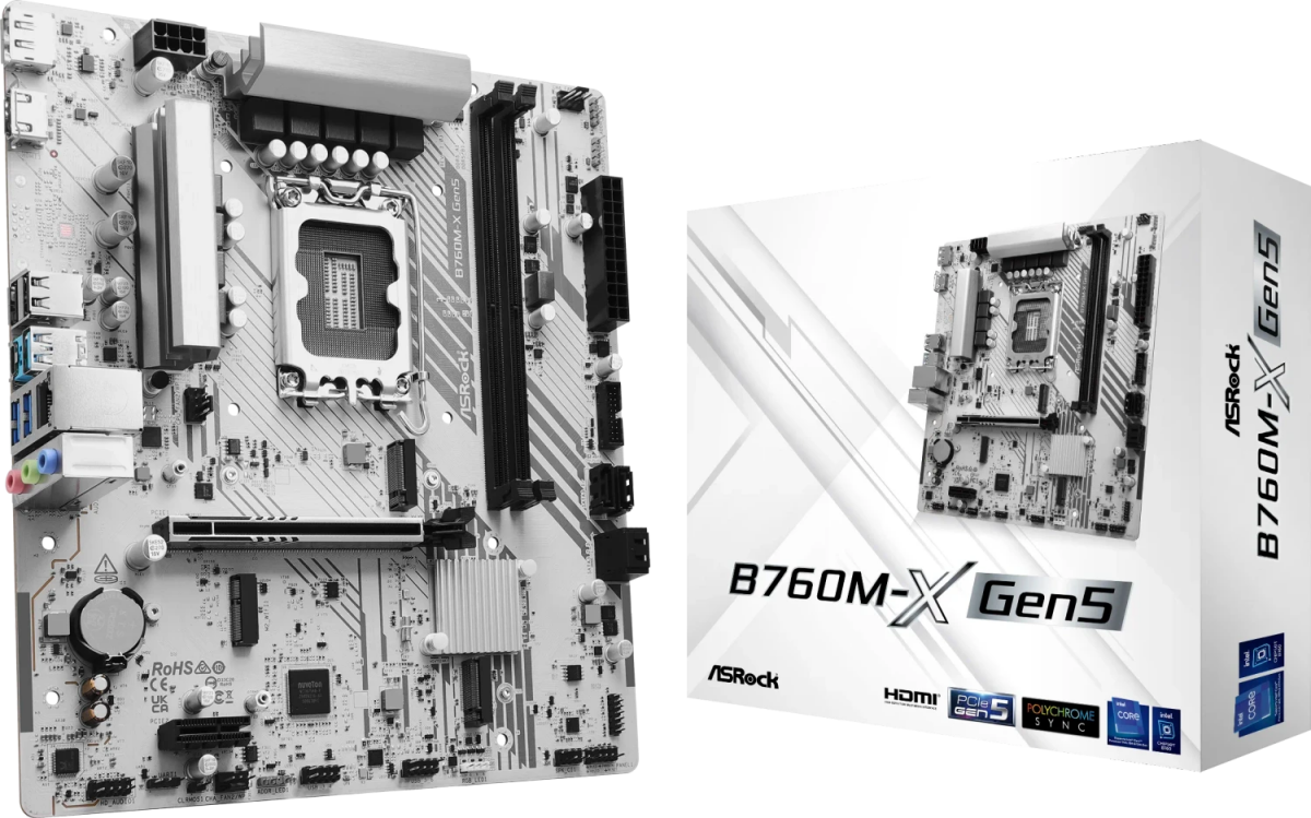Piegāde visā Latvijā un iespēja saņemt pasūtījumu izsniegšanas punktā. Ērti norēķinu veidi. Iespēja apmaksat tieši interneta veikalā, ar karti vai skaidrā naudā preces saņemšanas punkta. Detalizēts preču apraksts un salīdzināšanas iespēja. Populārākie zīmoli no pasaules ražotājiem. 88,60 € Preces ID: 41934 Pamatplate ASRock B760 B760M-X GEN5 Silver (90-MXBTR0-A0UAYZ) PamataRažotājs ........................................................................................................................................................................................................ Ražotāja kods ........................................................................................................................................................................................................ 90-MXBTR0-A0UAYZ Socket ........................................................................................................................................................................................................ LGA 1700 Mikroshēmu kopa (Chipset) ........................................................................................................................................................................................................ Intel B760 AtmiņaAtmiņas veids ........................................................................................................................................................................................................ DDR5 Atmiņas slotu skaits ........................................................................................................................................................................................................ 2 Diska kontrolieriSATA kontrolieris ........................................................................................................................................................................................................ SATA-III (6 Gb/s) RAID atbalsts ........................................................................................................................................................................................................ 0, 1, 5, 10 Paplašināšanas slotiPaplašināšanas sloti ........................................................................................................................................................................................................ PCI-E 5.0 x16, PCIe 3.0 x1, PCI-E M.2 Audio/VideoAudio kontrolieris ........................................................................................................................................................................................................ Realtek ALC897 TīklsTīkla saskarne ........................................................................................................................................................................................................ 2.5 Gigabit Ethernet (100/1000/2500 Mb/c) Tīkla kontrolieris ........................................................................................................................................................................................................ Realtek RTL8125BG SaskarnesLigzdas aizmugurējā panelī ........................................................................................................................................................................................................ 2 x USB 2.0, USB Type-C, 3 x USB 3.0, LAN, 3 x audio jacks, HDMI, DisplayPort, RJ-45 Barošanas apakšsistēmas radiators (mosfeti) ........................................................................................................................................................................................................ jā PapilduLigzdas korpusa ventilatoru pieslēgšanai ........................................................................................................................................................................................................ 4-pin ATX 12 V barošanas ligzda ........................................................................................................................................................................................................ 8-pin Iekšējās USB pieslēgvietas platē ........................................................................................................................................................................................................ USB 2.0, USB 3.2 Gen1 ARGB 5V savienotāji uz plates ........................................................................................................................................................................................................ 3-pin RGB 12V savienotāji uz plates ........................................................................................................................................................................................................ 4-pin Formfaktors ........................................................................................................................................................................................................ mATX Piegādes veids ........................................................................................................................................................................................................ Retail Noformējumā izmantotās krāsas ........................................................................................................................................................................................................ balts, sudraba PapildusGarantija ........................................................................................................................................................................................................ 12/2