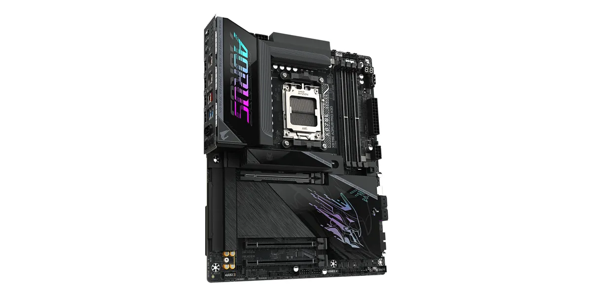 Piegāde visā Latvijā un iespēja saņemt pasūtījumu izsniegšanas punktā. Ērti norēķinu veidi. Iespēja apmaksat tieši interneta veikalā, ar karti vai skaidrā naudā preces saņemšanas punkta. Detalizēts preču apraksts un salīdzināšanas iespēja. Populārākie zīmoli no pasaules ražotājiem. Preces ID: 41942 Pamatplate Gigabyte X870E AORUS PRO AX Black (X870E A PRO X) PamataRažotājs ........................................................................................................................................................................................................ Ražotāja kods ........................................................................................................................................................................................................ X870E A PRO X Socket ........................................................................................................................................................................................................ AM5 Mikroshēmu kopa (Chipset) ........................................................................................................................................................................................................ AMD X870E AtmiņaAtmiņas veids ........................................................................................................................................................................................................ DDR5 Atmiņas slotu skaits ........................................................................................................................................................................................................ 4 Diska kontrolieriSATA kontrolieris ........................................................................................................................................................................................................ SATA-III (6 Gb/s) RAID atbalsts ........................................................................................................................................................................................................ 0, 1, 5, 10 Paplašināšanas slotiPaplašināšanas sloti ........................................................................................................................................................................................................ PCI-E 5.0 x16, PCI-E 4.0 x16, 4 x PCI-E M.2 Audio/VideoSkaņa ........................................................................................................................................................................................................ 8 kanāli (7.1) Audio kontrolieris ........................................................................................................................................................................................................ Realtek ALC1220-VB TīklsTīkla saskarne ........................................................................................................................................................................................................ Gigabit Ethernet (10/100/1000 Mb/c), 2.5 Gigabit Ethernet (100/1000/2500 Mb/c), 5 Gigabit Ethernet (100/1000/2500/5000 Mb/c), Wi-Fi, Bluetooth Tīkla kontrolieris ........................................................................................................................................................................................................ Realtek 8126 5Gbps SaskarnesLigzdas aizmugurējā panelī ........................................................................................................................................................................................................ LAN, 2 x audio jacks, 3 x USB 3.2 Gen1, 5 x USB 3.2 Gen2, 2 x USB 3.2 Gen2 Type-C, 2 x USB 4 Type-C, HDMI, RJ-45, S/PDIF (optiskais) PapilduLigzdas korpusa ventilatoru pieslēgšanai ........................................................................................................................................................................................................ 4-pin ATX 12 V barošanas ligzda ........................................................................................................................................................................................................ 8-pin Iekšējās USB pieslēgvietas platē ........................................................................................................................................................................................................ 2 x USB 2.0, 2 x USB 3.2 Gen1, USB 3.2 Gen2x2 Type-C RGB 12V savienotāji uz plates ........................................................................................................................................................................................................ 4-pin Formfaktors ........................................................................................................................................................................................................ ATX Piegādes veids ........................................................................................................................................................................................................ Retail Noformējumā izmantotās krāsas ........................................................................................................................................................................................................ melns PapildusGarantija ........................................................................................................................................................................................................ 12/24 men. Ražotāja mājās lapa ..........................................................................