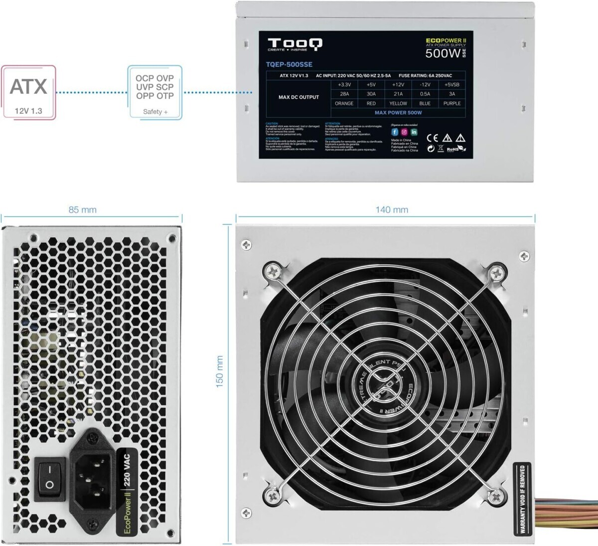 Piegāde visā Latvijā un iespēja saņemt pasūtījumu izsniegšanas punktā. Ērti norēķinu veidi. Iespēja apmaksat tieši interneta veikalā, ar karti vai skaidrā naudā preces saņemšanas punkta. Detalizēts preču apraksts un salīdzināšanas iespēja. Populārākie zīmoli no pasaules ražotājiem. Preces ID: 43767 Barošanas bloks TooQ Ecopower II SSE 500W OEM Gray (TQEP-500SSE-O) BasicRažotājs ........................................................................................................................................................................................................ Ražotāja kods ........................................................................................................................................................................................................ TQEP-500SSE-O Jauda ........................................................................................................................................................................................................ 500 W Standarts ........................................................................................................................................................................................................ ATX12V 1.3 PFC ........................................................................................................................................................................................................ aktīvs Ventilatora izmērs ........................................................................................................................................................................................................ 120 mm LigzdasMātesplates ligzdas veids ........................................................................................................................................................................................................ 20+4 pin 4 +4-pin CPU ligzdu skaits ........................................................................................................................................................................................................ 1 4-pin IDE (Molex) ligzdu skaits ........................................................................................................................................................................................................ 2 15-pin SATA ligzdu skaits ........................................................................................................................................................................................................ 4 PapilduPārsprieguma aizsardzība ........................................................................................................................................................................................................ jā Pārslodzes aizsardzība ........................................................................................................................................................................................................ jā Aizsardzība pret īsslēgumu ........................................................................................................................................................................................................ jā Sertifikāts 80 PLUS ........................................................................................................................................................................................................ nav Noformējumā izmantotās krāsas ........................................................................................................................................................................................................ pelēks PapildusGarantija ........................................................................................................................................................................................................ 12/24 men. |