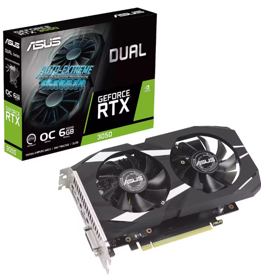 Piegāde visā Latvijā un iespēja saņemt pasūtījumu izsniegšanas punktā. Ērti norēķinu veidi. Iespēja apmaksat tieši interneta veikalā, ar karti vai skaidrā naudā preces saņemšanas punkta. Detalizēts preču apraksts un salīdzināšanas iespēja. Populārākie zīmoli no pasaules ražotājiem. Preces ID: 43975 Videokarte ASUS Dual GeForce RTX 3050 6GB GDDR6 (90YV0K60-M0NA00) PamataRažotājs ........................................................................................................................................................................................................ Ražotāja kods ........................................................................................................................................................................................................ 90YV0K60-M0NA00 Saskarne ........................................................................................................................................................................................................ PCI Express 4.0 Videoprocesora ražotājs ........................................................................................................................................................................................................ NVIDIA Sērija ........................................................................................................................................................................................................ GeForce RTX 3050 VideoprocesorsGrafiskā procesora arhitektūra ........................................................................................................................................................................................................ nVidia Ampere Grafiskā procesora koda nosaukums ........................................................................................................................................................................................................ GA106 Tehnoloģiskais process ........................................................................................................................................................................................................ 8 nm Grafiskā procesora frekvence ........................................................................................................................................................................................................ 1507 MHz Grafiskā procesora frekvence (Boost) ........................................................................................................................................................................................................ 1537 MHz OC versija ........................................................................................................................................................................................................ jā DirectX atbalsts ........................................................................................................................................................................................................ DirectX 12 Ultimate OpenGL atbalsts ........................................................................................................................................................................................................ OpenGL 4.6 AtmiņaAtmiņas apjoms ........................................................................................................................................................................................................ 6 Gb Atmiņas veids ........................................................................................................................................................................................................ GDDR6 Atmiņas kopne (kanālu skaits) ........................................................................................................................................................................................................ 96 bit Video atmiņas frekvence ........................................................................................................................................................................................................ 14000 MHz KonstrukcijaAizņemamo slotu skaits ........................................................................................................................................................................................................ 2 Dzesēšanas sistēma ........................................................................................................................................................................................................ aktīva Ventilatoru skaits ........................................................................................................................................................................................................ 2 Ligzdas ........................................................................................................................................................................................................ DVI, HDMI, DisplayPort PapilduAtbalstāmo monitoru skaits ........................................................................................................................................................................................................ 3 Maksimālā izšķirtspēja ........................................................................................................................................................................................................ 7680x4320 Ieteicamā barošanas avota jauda ....................................................................................................................................................................................................
