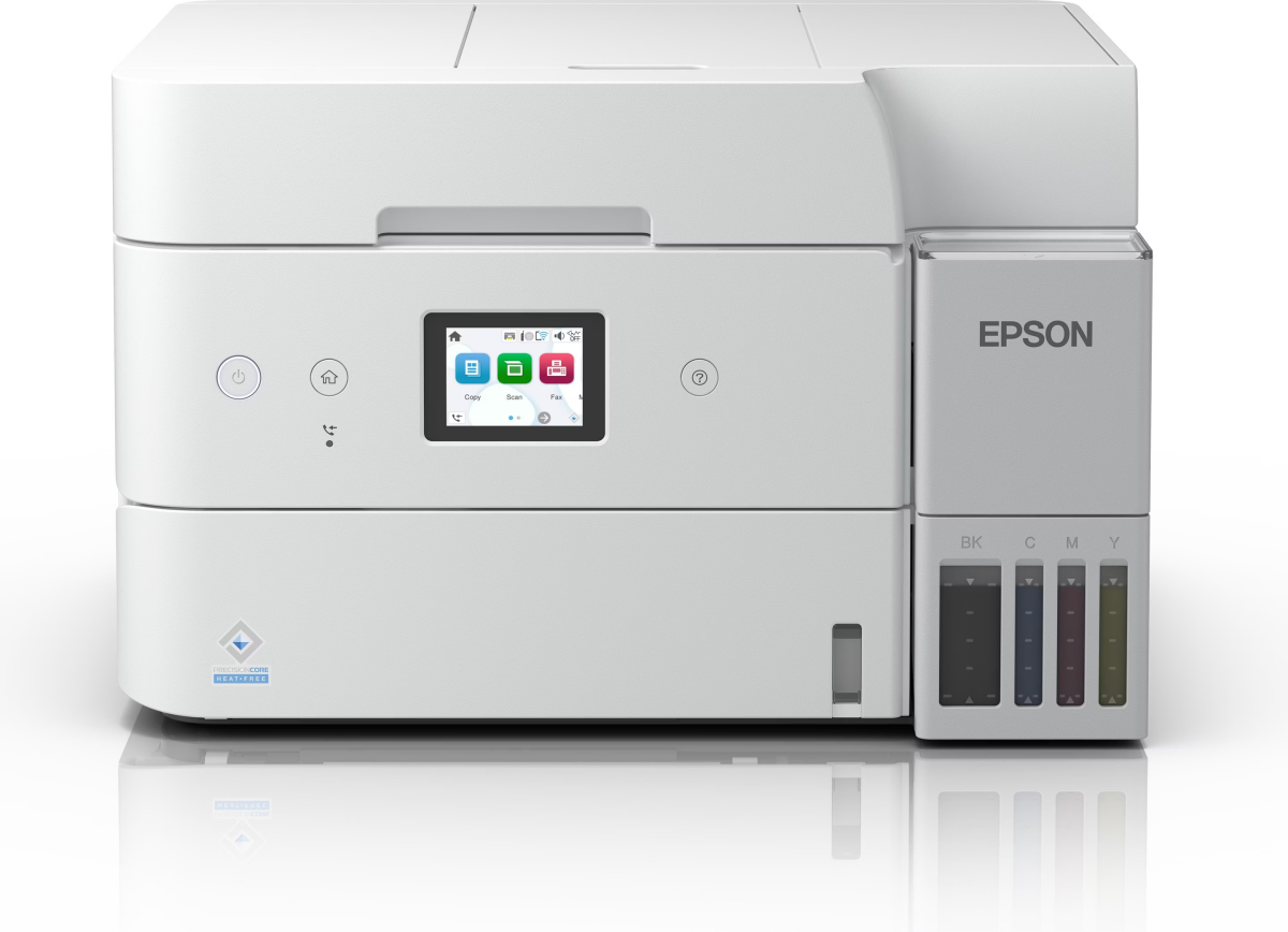 Automatic Document Feeder (ADF): Top-mounted, holds up to 30 sheets Papīra izvade ........................................................................................................................................................................................................ Output Tray Capacity: 30 sheets of plain A4 paper. Apdares ierīce (Finišeris)Elektroniskā šķirošana ........................................................................................................................................................................................................ jā IzejmateriāliPapīra blīvums ........................................................................................................................................................................................................ 64 - 300 g/m² Izdruka uz ........................................................................................................................................................................................................ aploksnes, etiķetes, fotopapīrs, glancēts papīrs, kartītes, matēts papīrs Krāsu kārtridža/tonera resurss ........................................................................................................................................................................................................ 7500 pages Melnbaltā kārtridža/tonera resurss ........................................................................................................................................................................................................ 6000 pages Kārtridžu skaits ........................................................................................................................................................................................................ 4 Tintes veids ........................................................................................................................................................................................................ Epson 102 EcoTank ink bottles Nepārtrauktas tintes padeves sistēma ........................................................................................................................................................................................................ jā FakssFaksa maksimālā izšķirtspēja ........................................................................................................................................................................................................ 200x200 dpi Maksimālais padošanas ātrums ........................................................................................................................................................................................................ 33.6 kbit/s PC Fax ........................................................................................................................................................................................................ jā Faksa atmiņa ........................................................................................................................................................................................................ 100 pages Krāsu fakss ........................................................................................................................................................................................................ jā Saskarnes un paplašinājumsSaskarnes ........................................................................................................................................................................................................ Ethernet (RJ-45), USB 2.0, Wi-Fi Tīmekļa saskarne. ........................................................................................................................................................................................................ jā AirPrint atbalsts ........................................................................................................................................................................................................ jā Tiešā druka ........................................................................................................................................................................................................ jā PapilduOS atbalsts ........................................................................................................................................................................................................ Mac OS, Windows LCD panelis (displejs) ........................................................................................................................................................................................................ jā Displeja diagonāle ........................................................................................................................................................................................................ 2.4" Enerģijas patēriņš (darbības laikā) ........................................................................................................................................................................................................ 12 W Enerģijas patēriņš (gaidīšanas režīmā) ........................................................................................................................................................................................................ 5.3 W Darba trokšņa līmenis ........................................................................................................................................................................................................ 51 dB Trokšņa līmenis gaidīšanas režīmā ...............................................................................................