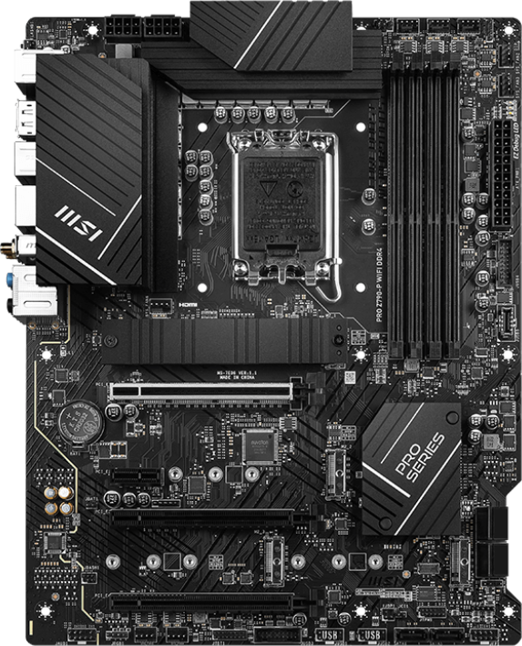 Piegāde visā Latvijā un iespēja saņemt pasūtījumu izsniegšanas punktā. Ērti norēķinu veidi. Iespēja apmaksat tieši interneta veikalā, ar karti vai skaidrā naudā preces saņemšanas punkta. Detalizēts preču apraksts un salīdzināšanas iespēja. Populārākie zīmoli no pasaules ražotājiem. 21.830,00 € Preces ID: 463622 Pamatplate MSI PRO Z790-P WIFI DDR4 PamataRažotājs ........................................................................................................................................................................................................ Ražotāja kods ........................................................................................................................................................................................................ PRO Z790-P WIFI DDR4 Ligzda ........................................................................................................................................................................................................ LGA 1700 Mikroshēmu kopa (Chipset) ........................................................................................................................................................................................................ Intel Z790 AtmiņaAtmiņas veids ........................................................................................................................................................................................................ DDR4 Atmiņas slotu skaits ........................................................................................................................................................................................................ 4 Diska kontrolieriSATA kontrolieris ........................................................................................................................................................................................................ 6 x SATA-III (6 Gb/s) RAID atbalsts ........................................................................................................................................................................................................ 0, 1, 5, 10 Paplašināšanas slotiPaplašināšanas sloti ........................................................................................................................................................................................................ PCI-E 5.0 x16, PCI-E 4.0 x16, PCI-E 3.0 x16, PCI-E x1, 4 x PCI-E M.2 M.2. slotu veids ........................................................................................................................................................................................................ - Key M, 22110/2280/2260/2242 (PCIe 4.0 x4); - Key M, 2280/2260/2242 (PCIe 4.0 x4); - Key M, 2280/2260/2242 (PCIe 4.0 x4 & SATA); - Key M, 2280/2260/2242 (PCIe 4.0 x4 & SATA). Atbalstītie PCI-Express režīmi ........................................................................................................................................................................................................ x16/x4/x1 Audio/VideoIntegrētais video ........................................................................................................................................................................................................ jā (ja tiek izmantots procesors ar video kodolu) Skaņa ........................................................................................................................................................................................................ 8 kanāli (7.1) Audio kontrolieris ........................................................................................................................................................................................................ Realtek ALC897 TīklsTīkla saskarne ........................................................................................................................................................................................................ 2.5 Gigabit Ethernet (100/1000/2500 Mbps), Wi-Fi, Bluetooth Tīkla kontrolieris ........................................................................................................................................................................................................ Intel SaskarnesLigzdas aizmugurējā panelī ........................................................................................................................................................................................................ PS/2, 4 x USB 2.0, 2 x USB 3.2 Gen1, USB 3.2 Gen2, USB 3.2 Gen2x2 Type-C, HDMI, DisplayPort, RJ-45 Barošanas apakšsistēmas radiators (mosfeti) ........................................................................................................................................................................................................ jā PapilduLigzdas korpusa ventilatoru pieslēgšanai ........................................................................................................................................................................................................ 6 x 4-pin ATX 12 V barošanas ligzda ........................................................................................................................................................................................................ 2 x 8-pin Iekšējās USB pieslēgvietas platē ........................................................................................................................................................................................................ 2 x USB 2.0, 2 x USB 3.2 Gen1, USB 3.2 Gen2 Type-C ARGB 5V savienotāji uz plates ........................................................................................................................................................