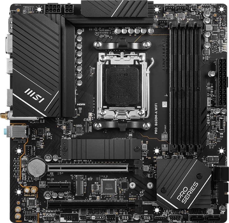 Piegāde visā Latvijā un iespēja saņemt pasūtījumu izsniegšanas punktā. Ērti norēķinu veidi. Iespēja apmaksat tieši interneta veikalā, ar karti vai skaidrā naudā preces saņemšanas punkta. Detalizēts preču apraksts un salīdzināšanas iespēja. Populārākie zīmoli no pasaules ražotājiem. 175,40 € Preces ID: 466872 Pamatplate MSI PRO B650M-A WIFI (PRO B650M-A WIFI) PamataRažotājs ........................................................................................................................................................................................................ Ražotāja kods ........................................................................................................................................................................................................ PRO B650M-A WIFI Ligzda ........................................................................................................................................................................................................ AM5 Mikroshēmu kopa (Chipset) ........................................................................................................................................................................................................ AMD B650 AtmiņaAtmiņas veids ........................................................................................................................................................................................................ DDR5 Atmiņas slotu skaits ........................................................................................................................................................................................................ 4 Diska kontrolieriSATA kontrolieris ........................................................................................................................................................................................................ 4 x SATA-III (6 Gb/s) RAID atbalsts ........................................................................................................................................................................................................ 0, 1, 10 Paplašināšanas slotiPaplašināšanas sloti ........................................................................................................................................................................................................ 2 x PCI-E 4.0 x16, PCI-E x1, 2 x PCI-E M.2 M.2. slotu veids ........................................................................................................................................................................................................ - Key M, 2280/2260 (PCIe 4.0 x4); - Key M, 2280/2260 (PCIe 4.0 x4). Atbalstītie PCI-Express režīmi ........................................................................................................................................................................................................ x16/x4 Audio/VideoIntegrētais video ........................................................................................................................................................................................................ jā (ja tiek izmantots procesors ar video kodolu) Skaņa ........................................................................................................................................................................................................ 8 kanāli (7.1) Audio kontrolieris ........................................................................................................................................................................................................ Realtek ALC897 TīklsTīkla saskarne ........................................................................................................................................................................................................ 2.5 Gigabit Ethernet (100/1000/2500 Mbps), Wi-Fi, Bluetooth Tīkla kontrolieris ........................................................................................................................................................................................................ Realtek RTL8125BG SaskarnesLigzdas aizmugurējā panelī ........................................................................................................................................................................................................ 4 x USB 3.2 Gen1, 4 x USB 3.2 Gen2, HDMI, DisplayPort, RJ-45 Barošanas apakšsistēmas radiators (mosfeti) ........................................................................................................................................................................................................ jā PapilduLigzdas korpusa ventilatoru pieslēgšanai ........................................................................................................................................................................................................ 3 x 4-pin ATX 12 V barošanas ligzda ........................................................................................................................................................................................................ 4-pin, 8-pin Iekšējās USB pieslēgvietas platē ........................................................................................................................................................................................................ 2 x USB 2.0, USB 3.2 Gen1, USB 3.2 Gen2 Type-C ARGB 5V savienotāji uz plates ........................................................................................................................................................................................................ 2 x 3-pin RGB 12V savienotāji uz plates ............................................................................