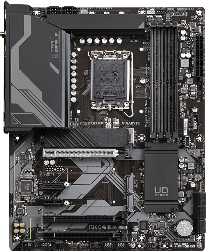 Piegāde visā Latvijā un iespēja saņemt pasūtījumu izsniegšanas punktā. Ērti norēķinu veidi. Iespēja apmaksat tieši interneta veikalā, ar karti vai skaidrā naudā preces saņemšanas punkta. Detalizēts preču apraksts un salīdzināšanas iespēja. Populārākie zīmoli no pasaules ražotājiem. 23.450,00 € Preces ID: 467026 Pamatplate Gigabyte Z790 UD AX PamataRažotājs ........................................................................................................................................................................................................ Ražotāja kods ........................................................................................................................................................................................................ Z790 UD AX Ligzda ........................................................................................................................................................................................................ LGA 1700 Mikroshēmu kopa (Chipset) ........................................................................................................................................................................................................ Intel Z790 AtmiņaAtmiņas veids ........................................................................................................................................................................................................ DDR5 Atmiņas slotu skaits ........................................................................................................................................................................................................ 4 Diska kontrolieriSATA kontrolieris ........................................................................................................................................................................................................ 6 x SATA-III (6 Gb/s) RAID atbalsts ........................................................................................................................................................................................................ 0, 1, 5, 10 Paplašināšanas slotiPaplašināšanas sloti ........................................................................................................................................................................................................ PCI-E 5.0 x16, PCI-E 4.0 x16, PCI-E 3.0 x16, 2 x PCI-E x1, 3 x PCI-E M.2 M.2. slotu veids ........................................................................................................................................................................................................ - Socket 3, M key, 22110/2280 (PCIe 4.0 x4/x2); - Socket 3, M key, 2280 (PCIe 4.0 x4/x2); - Socket 3, M key, 2280 (PCIe 4.0 x4/x2). Atbalstītie PCI-Express režīmi ........................................................................................................................................................................................................ x16/x4/x1 Audio/VideoIntegrētais video ........................................................................................................................................................................................................ jā (ja tiek izmantots procesors ar video kodolu) Skaņa ........................................................................................................................................................................................................ 8 kanāli (7.1) Audio kontrolieris ........................................................................................................................................................................................................ Realtek TīklsTīkla saskarne ........................................................................................................................................................................................................ 2.5 Gigabit Ethernet (100/1000/2500 Mbps), Wi-Fi, Bluetooth Tīkla kontrolieris ........................................................................................................................................................................................................ Realtek SaskarnesLigzdas aizmugurējā panelī ........................................................................................................................................................................................................ PS/2, 4 x USB 2.0, 4 x USB 3.2 Gen1, USB 3.2 Gen2, USB 3.2 Gen2x2 Type-C, HDMI, DisplayPort, RJ-45 Barošanas apakšsistēmas radiators (mosfeti) ........................................................................................................................................................................................................ jā PapilduLigzdas korpusa ventilatoru pieslēgšanai ........................................................................................................................................................................................................ 4 x 4-pin ATX 12 V barošanas ligzda ........................................................................................................................................................................................................ 2 x 8-pin Iekšējās USB pieslēgvietas platē ........................................................................................................................................................................................................ 2 x USB 2.0, USB 3.2 Gen1, USB 3.2 Gen1 Type-C ARGB 5V savienotāji uz plates ........................................................................................................................................................................................................ 2 x 3-pin RGB 1