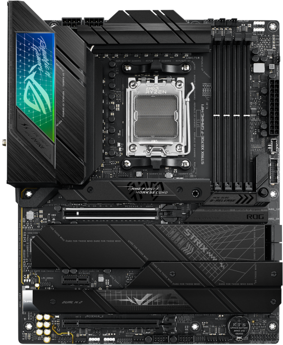 Piegāde visā Latvijā un iespēja saņemt pasūtījumu izsniegšanas punktā. Ērti norēķinu veidi. Iespēja apmaksat tieši interneta veikalā, ar karti vai skaidrā naudā preces saņemšanas punkta. Detalizēts preču apraksts un salīdzināšanas iespēja. Populārākie zīmoli no pasaules ražotājiem. Preces ID: 467789 Pamatplate ASUS ROG STRIX X670E-F GAMING WIFI PamataRažotājs ........................................................................................................................................................................................................ Ražotāja kods ........................................................................................................................................................................................................ ROG STRIX X670E-F GAMING WIFI Socket ........................................................................................................................................................................................................ AM5 Mikroshēmu kopa (Chipset) ........................................................................................................................................................................................................ AMD X670E AtmiņaAtmiņas veids ........................................................................................................................................................................................................ DDR5 Atmiņas slotu skaits ........................................................................................................................................................................................................ 4 Diska kontrolieriSATA kontrolieris ........................................................................................................................................................................................................ 4 x SATA-III (6 Gb/s) RAID atbalsts ........................................................................................................................................................................................................ 0, 1, 10 Paplašināšanas slotiPaplašināšanas sloti ........................................................................................................................................................................................................ PCI-E 5.0 x16, PCI-E 4.0 x16, PCIe 3.0 x1, 4 x PCI-E M.2 M.2. slotu veids ........................................................................................................................................................................................................ - Key M, 2242/2260/2280 (PCIe 5.0 x4); - Key M, 2242/2260/2280 (PCIe 5.0 x4); - Key M, 2242/2260/2280/22110 (PCIe 4.0 x4); - Key M, 2242/2260/2280 (PCIe 4.0 x4). Atbalstītie PCI-Express režīmi ........................................................................................................................................................................................................ x16/x4 Audio/VideoIntegrētais video ........................................................................................................................................................................................................ jā (ja tiek izmantots procesors ar video kodolu) Skaņa ........................................................................................................................................................................................................ 8 kanāli (7.1) Audio kontrolieris ........................................................................................................................................................................................................ SupremeFX ALC4080 TīklsTīkla saskarne ........................................................................................................................................................................................................ 2.5 Gigabit Ethernet (100/1000/2500 Mb/c), Wi-Fi, Bluetooth Tīkla kontrolieris ........................................................................................................................................................................................................ Intel SaskarnesLigzdas aizmugurējā panelī ........................................................................................................................................................................................................ 2 x USB 2.0, 7 x USB 3.2 Gen2, 2 x USB 3.2 Gen2 Type-C, USB 3.2 Gen2x2 Type-C, HDMI, DisplayPort, RJ-45, S/PDIF (optiskais) Barošanas apakšsistēmas radiators (mosfeti) ........................................................................................................................................................................................................ jā PapilduLigzdas korpusa ventilatoru pieslēgšanai ........................................................................................................................................................................................................ 5 x 4-pin ATX 12 V barošanas ligzda ........................................................................................................................................................................................................ 2 x 8-pin Iekšējās USB pieslēgvietas platē ........................................................................................................................................................................................................ 2 x USB 2.0, USB 3.2 Gen1, USB 3.2 Gen2x2 Type-C ARGB 5V savienotāji uz plates ...............................................................................................................................................................